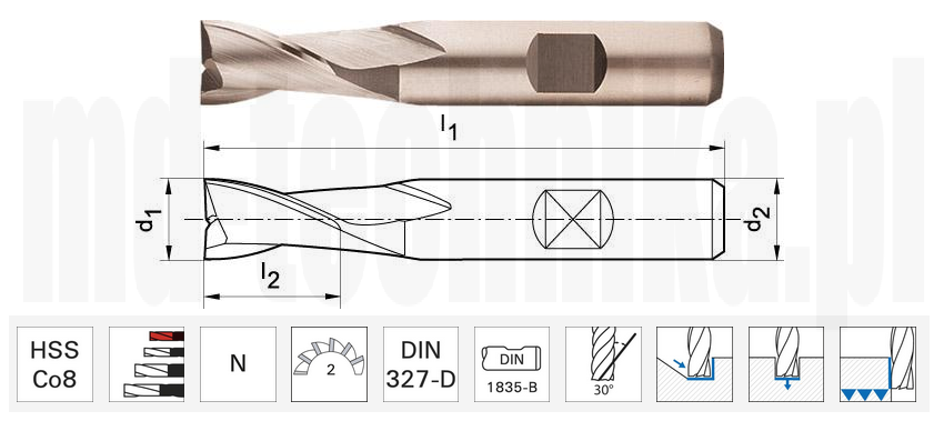 FORMAT: Frez do podłużnych otworów, krótki, HSSCo8 DIN327, kształt D 15,0mm FORMAT 8221061500 21061500