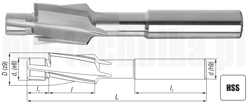 PAFANA: Frez walcowo-czołowy SM0952T 9,5x10x25x75mm - 2-ostrzowy, krótki